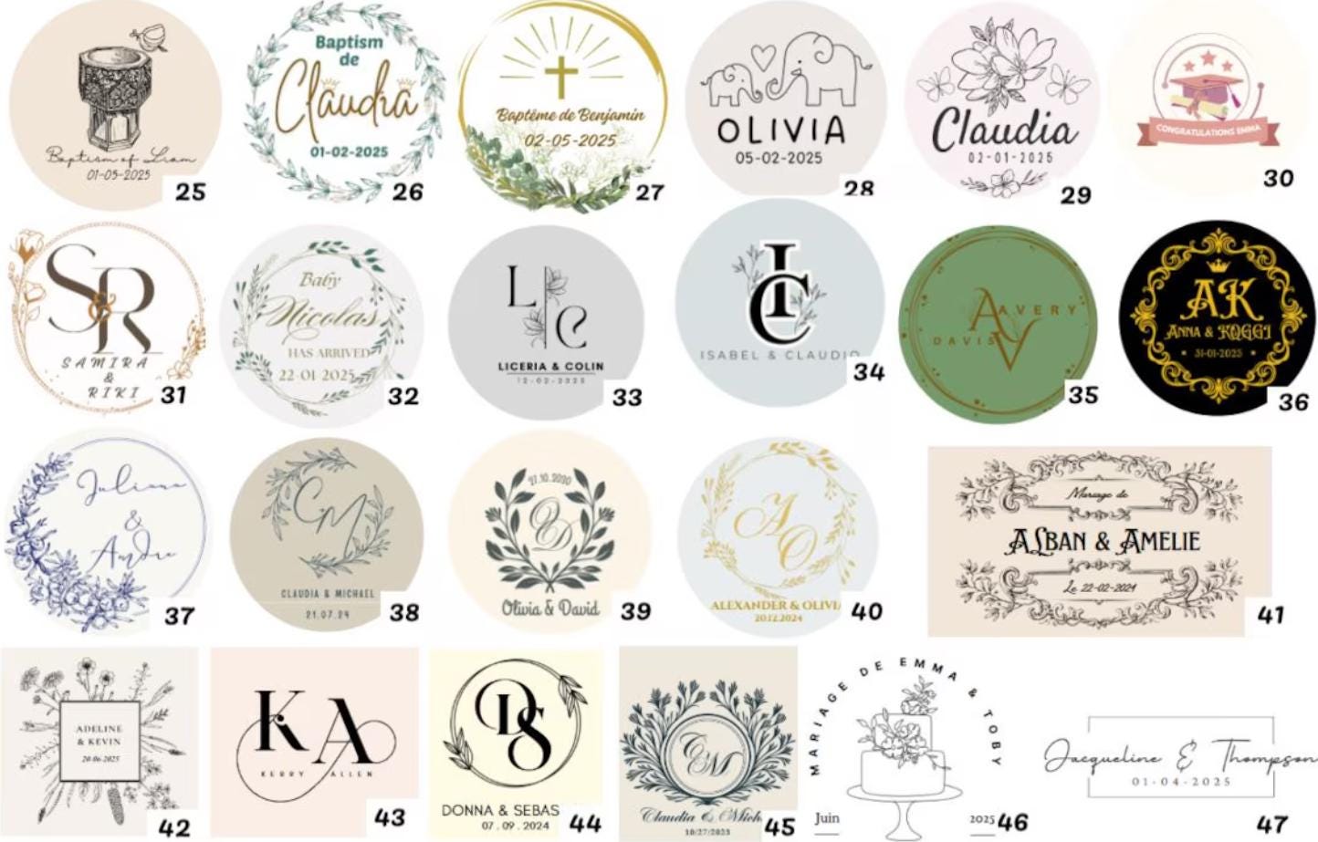 Les étiquettes peuvent être personnalisées pour la personne à qui le bouquet est destiné (maman, mamie, maîtresse, etc.).