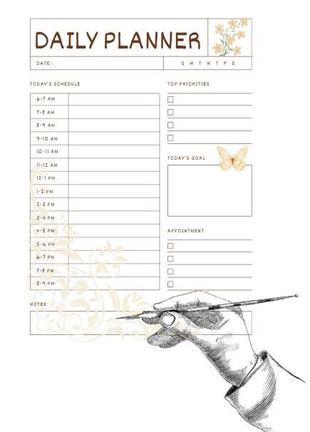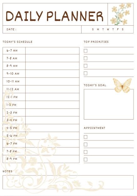 This printable daily planner includes dedicated sections for your schedule, priorities, appointments, goals, and notes so you can easily manage your time and stay productive throughout the day.